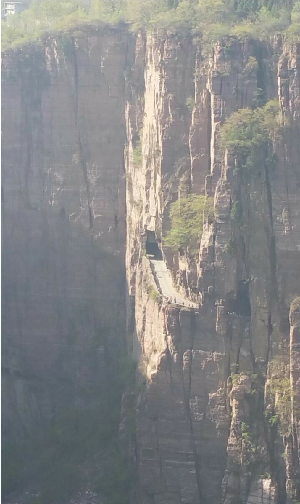 절벽에 보이는 자동차 도로 터널